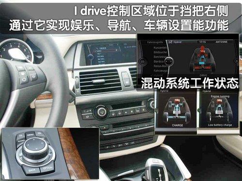 BMW ActiveHybrid X6標配通過iDrive控制的寶馬專業級導航系統,也可利用增強的語音控制功能對其進行控制。寶馬聯網駕駛的客戶還可以使用寶馬線路圖,只需按一下按鈕即可在車上通過寶馬在線功能直接檢索風景最美的行車路線。除導航數據外,用戶還可以將自己喜歡的音樂保存在車內存儲容量達80 GB的硬盤上。