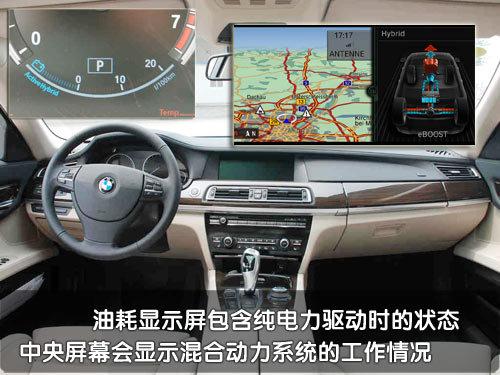 在儀表臺(tái)部分混合動(dòng)力7系轎車的油耗顯示區(qū)域與普通車型明顯不同,它的指針從“Active HyBrid ”開(kāi)始,指針指向這個(gè)部分的時(shí)候代表并不會(huì)消耗燃油。而混合動(dòng)力7系轎車的電機(jī)部分并不能單獨(dú)支撐車子行駛很長(zhǎng)的時(shí)間,它更多的作用是為了輔助引擎,以及在車輛制動(dòng)和滑行過(guò)程中收集制動(dòng)能量轉(zhuǎn)化為電能儲(chǔ)存在電池中。