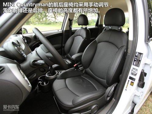MINICountryman的前后座椅均采用手動調節,無論前排還是后排,座椅的高度都有所增加,雖然調節范圍夠大,但也沒有MINI Cooper那“貼地”的駕駛感受。這樣做的好處是顯而易見的,MINICountryman的車內視野非常好,座椅的各項承托力也比較出色,所以駕駛員更多收獲的是輕松自在的感受。