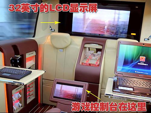 32英寸的LCD顯示屏放置在前排座椅后的隔斷墻上,其可以作為索尼Vaio筆記本電腦系統的顯示器,并且該車的車廂內部還有無線網絡又來連接另外的筆記本電腦。所安裝的索尼Playstation 3游戲控制臺可以播放電影以及賽車模擬游戲。此外其較大的顯示屏還可以同時全方位的展示車輛周圍的狀況。