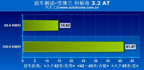與相對不算特別出色的加速成績相比,科帕奇的剎車還是十分令人滿意的,在汽車之家的測試中,它只用了不到42米就將車輛從100Km/h穩穩停住,已經達到優秀的界定標準了,對于重心和底盤更高的SUV車型來說,能取得這樣的成績已經很不錯了。