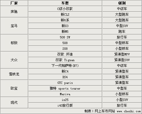 以奔馳、寶馬和標致為主的歐系品牌在此次巴黎車展上將甙類多款車型的首發,在上述表格中我們所列的車型都是從未在其他車展中亮相過的,屬于全球首發。其中奔馳的改款CLS、寶馬的新X3,在不久的將來肯定會成為奔馳中國和寶馬中國所引進的全新進口車型,在中國市場銷售。