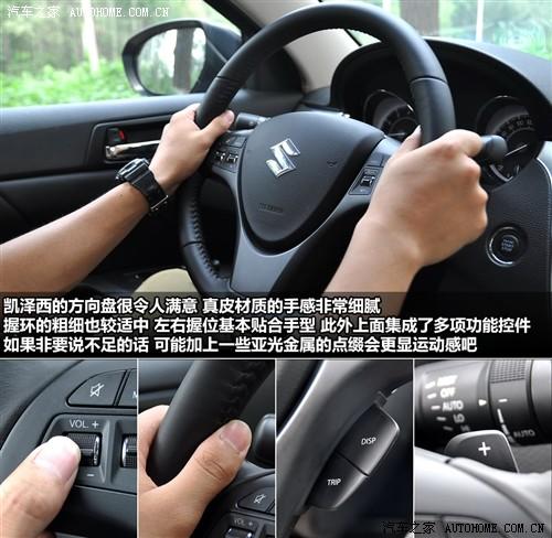 進入車內坐在駕駛席上,凱澤西的方向盤首先得到了我們的認可。作為一款運動車型,方向盤的手感直接影響到駕駛者的感受,而凱澤西裝備的這款方向盤無論是材質做工還是功能表現我們都挑不出有什么不足。音量調節是通過方便順手的撥輪方式實現的,左右握位的造型也很貼合手型,還帶有換擋撥片,一款運動型車該有的凱澤西基本都做到了,只是如果要加入點亞光金屬元素的點綴就更好了。