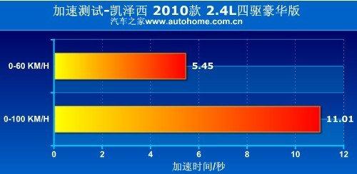 有了前面的駕駛感受,我們也就對鈴木凱澤西的加速能力有了大概的預期。還記得凱澤西在廣告中宣稱0-100公里/小時加速7.8秒,這個成績確實很吸引人,但不要忘了那是6擋手動版車型,不僅整備質量輕了100來公斤,輪胎也要窄20毫米。所以這輛2.4+CVT版跑出11.01秒的成績一點也不奇怪。