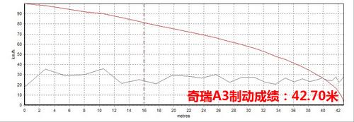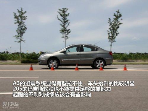 在0-100公里時速加速測試中,A3的避震系統有些拉不住,車頭抬升的比較明顯,205的瑪吉斯輪胎也不能提供足夠的抓地力,起跑的不利對成績應該會有些影響。其實A3的新發動機動力輸出很線性,這也是自主品牌廠商一直都青睞的調教方式,所以你無法從中找到強烈的爆發點。最終的成績也是中規中矩的,12.4秒的成績比之前的老款發動機已經有了明顯提升。
