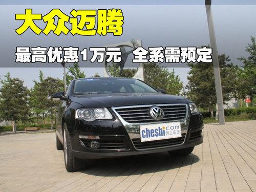 據北京一汽大眾4S店銷售人員介紹:目前2011款邁騰全系最高優惠1萬元。其中1.4T車型都優惠9000元,1.8T及2.0T舒適型優惠10000元,1.8T及2.0T豪華型優惠8000元。由于大眾生產線全力生產國產CC,邁騰產量有所下降,目前邁騰全系幾乎處于無現車狀態,只有少數4S店的極個別車型有1、2臺黑色現車。如果需要預定,全系的訂金都為1000元,等待2-4周即可提車。著急提車的朋友可多咨詢幾家4S店,說不定您想要的車型正好有現車。