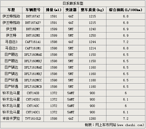 日韓系陣營中,整體態勢較為平均,而起亞品牌的車型沒有新車型入選比較令人感到意外。占據最大份額的是日產品牌,頤達、騏達以及軒逸三款車型共有6款車型入選。鈴木有四款車型登錄目錄,都是同一款車型——北斗星。而飽受召回門困擾的豐田也只有一款自動檔卡羅拉進入第二批大名單中。