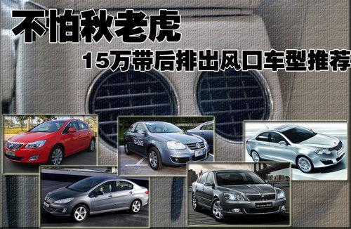 在8月8日(立秋)之后,我國就已經進入了傳統意義上的“秋天”。不過今年的秋老虎顯得格外的兇猛,近日我國不少地區白天的最高氣溫依然超過了30攝氏度,而使用多時的空調在目前仍然是不可或缺的。不過在很多情況下,前排乘客已經感覺到絲絲的涼意,而后排的乘客依然大汗漓淋。為此,很多廠家從舒適的角度考慮,在后排也設置了空調出風口,讓后排的乘客也能在炎炎“秋”日感受到涼意。下面我們將為廣大消費者列舉售價在15萬左右、后排配備出風口的車型,希望對您的購車有所幫助。