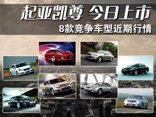近年來隨著國家政策方面的逐漸開放,許多進口車型的價格已慢慢逼近合資品牌的價格。在中級車市場上,這樣的價格形式更加突出,進口起亞方面宣布在8月19日推出一款中級車——凱尊,其預計的售價21.98萬元起,相信在其退出后,一定會給同級合資品牌車型帶來不小的壓力。與此同時,我們也整理出了8款同級車的近期行情,供欲購車消費者參考。