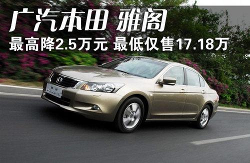 當提到中級車型大家也許會不約而同的想起廣本雅閣,新雅閣憑借其大氣的外觀、舒適的空間和豪華的配置對于中級轎車市場的構成起到了舉足輕重的作用。去年,廣汽本田又對第8代雅閣進行了小改款,對原來車型的配置有一定程度提升,部分車型增加了智能鑰匙和后遮陽板等配置,提高了雅閣整體車型的性價比。近日根據網上車市價格監測系統顯示,目前雅閣現金最高優惠2.5萬元,最低售價逼平17萬。具體價格以及優惠幅度如下: