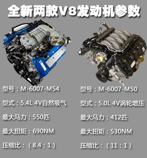 福特發布的這兩款V型8氣缸發動機,均是每缸4氣門設計,但是分別具有不同的性能特征。排量為5.0L的渦輪增壓發動機最高馬力達412匹,主要搭載車身相對較小的跑車等性能車款上。而排量為5.4L自然吸氣的這款機型,最高馬力達550匹,主要搭載在大型車的身上。