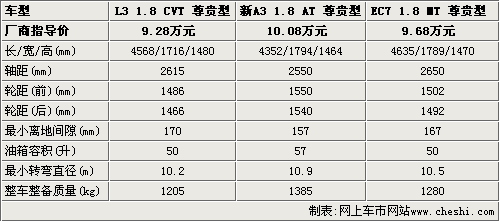 比亞迪L3和奇瑞新A3上市時間還不到半個月,而帝豪EC7推出已經有一年的時間了,這三款車型有兩款都是新產品,而且都推出了1.8L尊貴型配置產品,在價格、動力以及配置方面都有很多共同之處,直接形成競爭趨勢。我們對這三款尊貴型車型進行對比,目的是看看這三款產品在參數、動力以及配置方面究竟都有哪些過人之處。