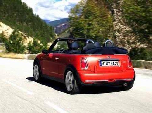 2004年Mini敞篷車上市,車頂全自動(dòng)開(kāi)啟,只需15秒鐘。開(kāi)啟按鈕按下后,首先開(kāi)啟的是一體式滑動(dòng)車頂,然后整個(gè)軟車頂打開(kāi)。由于采用了Z型折疊機(jī)構(gòu),整個(gè)車頂可以在后排座椅之后非常緊湊地折疊起來(lái),無(wú)需后部蓋罩。