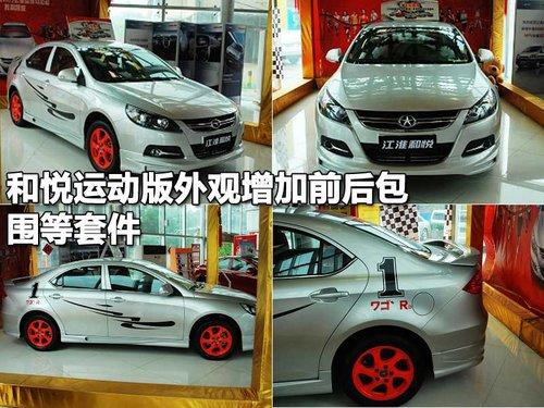 和悅運動版的外形還是具有相當的親和力,但進行了外觀改裝后,顯得運動味十足,加了前包圍的運動版前臉給人更加銳利的感覺。和悅的前臉采用雙“U”型設計,端莊大氣,車身側面,寬大的后視鏡有些夸張,改裝的紅色鋁合金輪轂運動感很強。側裙加裝了運動包圍,另外除了尾部的運動包圍,還增加了一個運動導流板。