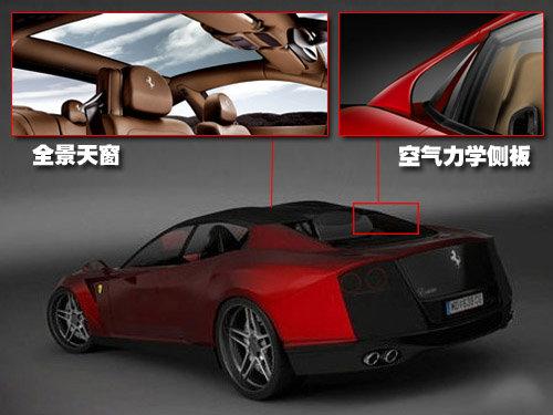 延續(xù)法拉利599GTB車側(cè)流體力學設(shè)計,這小小的兩片隆起,會額外提供一部分下壓力使車身更加貼近地面。全景天窗在低端車型早已司空見慣,出現(xiàn)在法拉利四門超跑上的作用,無非是使無法享受駕駛樂趣的后排乘客看看風景,亦或是馳騁大街小巷時,讓后排貴賓真正看清楚什么叫做“天旋地轉(zhuǎn)”吧。