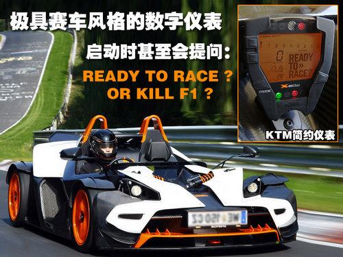 R版本經(jīng)過對引擎位置的重新設(shè)定,導(dǎo)致整車有著更低的重心,這樣使得它擁有更高的過彎速度,更加貼地的車身和更精準(zhǔn)的駕駛精度。老款KTM X-BOW車重700公斤 0-160公里每小時提速時間僅僅為3.9秒。F1賽車可以在2.5秒內(nèi)從0加速到100公里每小時。算起來,X-BOW R更輕的車身,更強(qiáng)大的引擎輸出,想超越F1賽車,并不是件難事。