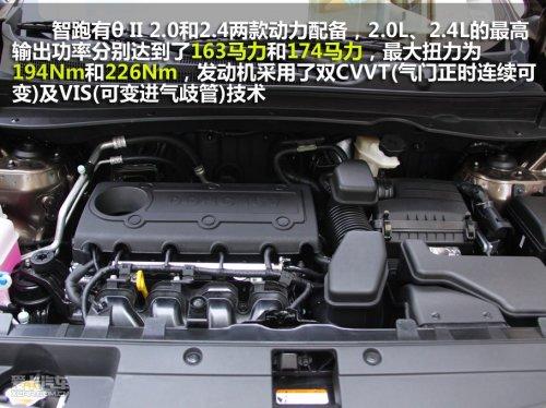 動力總成:國產智跑將搭載現代集團最新開發的ThetaII系列四缸汽油發動機,排量有2.0L與2.4L兩款。最大功率分別為105kW和128kW,最大扭矩為197Nm和227Nm,與之匹配的是與ix35相同的5速手動和6速手自一體變速器。