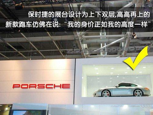 所謂“飛檐走壁”派其實是我個人對那些把展車架在“天上”的廠商。例如在歐洲非常受歡迎的SMART品牌就把兩臺展車高高的懸掛在了空中,一個橫著、一個豎著讓人無論怎樣看過去都會發現有一臺smart是“飛”在天上的。保時捷在這一次巴黎車展也發布了全新跑車,此外在展臺的兩層建筑的上層保時捷還把一臺跑車放在了透明的盒子里,好像巴黎街頭名品服裝店內的模特一樣。BMW展臺同樣是雙層建筑的設計,在二層一臺老爺車與一臺電動版1系分別代表著寶馬的過去與未來。