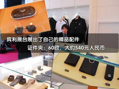 也許您買不起賓利汽車,但如果您是一個賓利品牌發燒友的話不妨到賓利展臺的精品配件區看看,哪里有包括衣服、手表、飾品在內的全套精品,但是價格卻都不便宜。一如一個看上去非常簡單的鑰匙包或是證件夾售價60歐元,大致是人民幣540元。