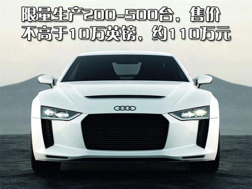 奧迪官方稱正與工程師團隊協作將Quattro概念車量產變為現實,需要做多處工程學上的改良設計。這款車先期會限量生產200至500輛,售價估計不會高于10萬英鎊,約合人民幣110萬,預計會引入國內市場銷售。
