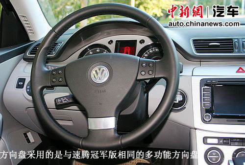 方向盤還是沿用了大眾的三幅方向盤,外圈以真皮包裹手感還算過(guò)得去,方向盤兩側(cè)帶有多功能按鍵,可較為方便的對(duì)音響系統(tǒng)等進(jìn)行控制,但由于按鈕較小使用起來(lái)并不是很舒服,不過(guò)也許在用慣了的情況下還算好用。