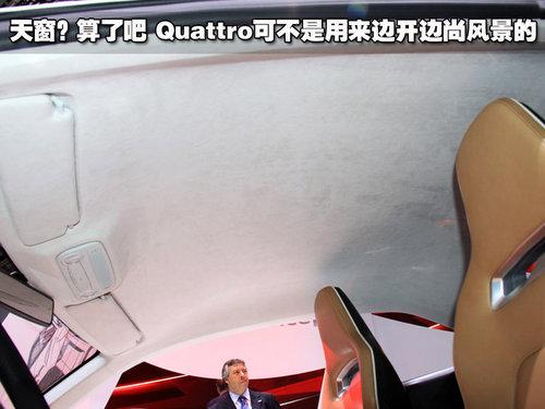 通過(guò)這張圖我們可以看出奧迪Quattro概念車并未配備天窗,不過(guò)大家也不必疑問(wèn)為何這樣一款好車連天窗都沒(méi)有,對(duì)于奧迪Quattro概念車來(lái)說(shuō),它的用途可不是欣賞風(fēng)景,競(jìng)速才是它的真正目的。
