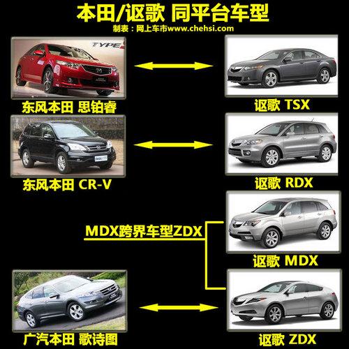 目前廣汽本田/東風本田生產(chǎn)的部分車型都與謳歌車型同來自一個平臺。例如:東風本田的高性能運動轎車思鉑睿就和謳歌TSX同平臺生產(chǎn)。同出一轍東風本田的CR-V與謳歌RDX也存在同樣的關系。而即將上市的廣汽本田歌詩圖則是與謳歌MDX的跨界車型ZDX的平臺相同。廣汽本田歌詩圖上市后的價格明顯要比原裝引進謳歌ZDX的價格低,當然也更容易被中國消費者所接受。
