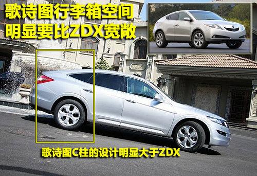 廣汽本田歌詩圖由于車身長度和軸距都要比謳歌ZDX長,所以意味著歌詩圖的內(nèi)部空間要比ZDX寬敞,尤其是行李箱的空間,這點(diǎn)從歌詩圖C柱的設(shè)計(jì)就可以看出。另外廣汽本田歌詩圖的輪轂兇猛,與其身份相符動(dòng)感十足。