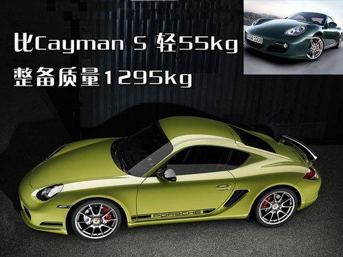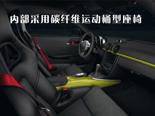 相對Cayman S,其重量減輕了55kg, 整備質量僅1295kg。搭配獨特的固定式后擾流板、優質銀色車輪以及眾多內部和外部運動風格部件,確保了獨具個性的車輛外型。帶有黑色邊框的大燈、黑色車外后視鏡以及采用黑色或銀色對比色的車身“PORSCHE”標志均彰顯了經典保時捷賽車的設計特色。值得一提的是,它配備了整個保時捷家族中最輕的合金輪轂,整套輪轂組件的重量不到40kg。