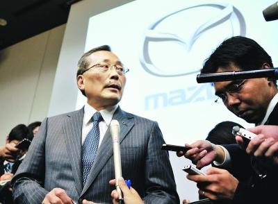 圖為日本馬自達(dá)汽車公司總裁山田憲昭18日在東京出席記者招待會的情形。該公司當(dāng)天宣布,美國福特汽車公司對其持股比例將從11%降至3.5%,這將使前者喪失馬自達(dá)最大股東身份。據(jù)悉,福特自1979年以來一直是馬自達(dá)的最大股東,一度擁有馬自達(dá)超過1/3的股份,自2008年全球金融危機(jī)爆發(fā)以來開始減持馬自達(dá)股份。