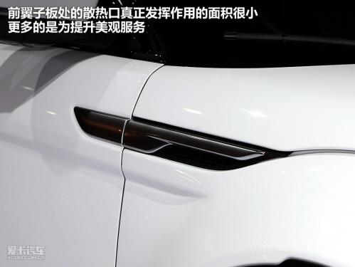 EVOQUE極光前進氣格柵之下前保險杠占據了大半的比例,底部的銀色的裝飾條意欲點睛之用,但似有搶鏡之勢,發動機艙蓋上的進氣口尚不知其效用究竟有多大,想必美觀之用是其最大的作用吧。