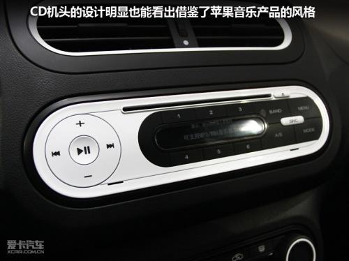 中控區(qū)域,出風(fēng)口與音響、空調(diào)兩個(gè)功能區(qū)塊造型風(fēng)格保持一致,簡約而富有整體感。特別是音響控制面板,白色的面板和同樣類似于蘋果音樂播放產(chǎn)品的風(fēng)格,相信會(huì)吸引大批追求時(shí)尚的年輕人。另外雖然這款展車為MG3低配車型,但仍然安裝了自動(dòng)空調(diào)。