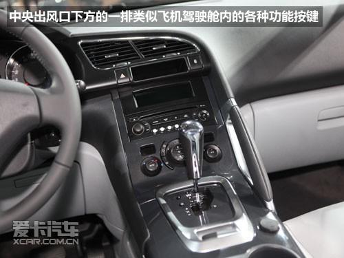 法國車的內飾一向喜歡把GPS導航的液晶屏設計在中控臺的上方,但我們在廣州車展上見到的這部確沒有配備GPS導航系統。另外這款標志3008還可以選配HUD抬頭顯示系統,這套抬頭系統并不是將車況信息投射在前檔玻璃上而是投射在儀表前方的一塊透明玻璃上,對于駕駛員的安全提供了更多的保障。