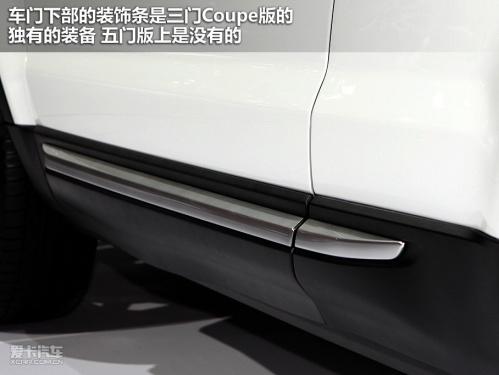 車身側面線條是其設計的一大看點,凸起的腰線挺拔清晰,逐漸上揚貫穿整個車身。前翼子板處的散熱口真正發(fā)揮作用的面積很小,更多的是為提升美觀服務。車門下部的裝飾條是三門Coupe版的獨有的裝備,五門版上是沒有的。