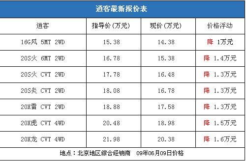 據經銷商介紹,目前北京地區(qū)逍客現車數量充裕,可選的顏色也比較多,隨時到店均可提現車。即使部分顏色沒有現車,預定后也能很快到店。經銷商表示,購車后如果在店內辦理一條龍服務,還可贈送價值3000元的裝飾品,到店面談還可獲得更多的優(yōu)惠。北京地區(qū)的一些東風日產4S店內逍客的價格比較穩(wěn)定,全系車型的降幅仍然穩(wěn)定在7000元,如果到店看車面談,優(yōu)惠幅度還可增加不少。