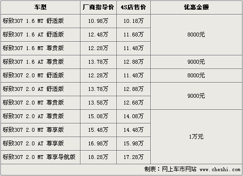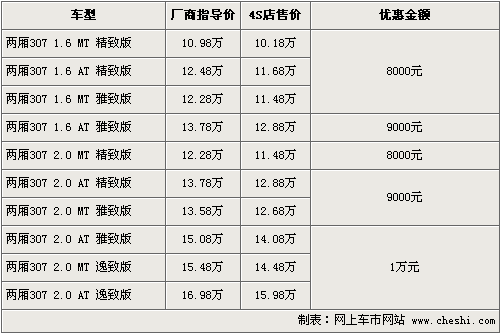東風標致旗下的“大嘴”307,自在08年上市至今得到了消費者的一直認可和喜愛。根據網上車市價格監測系統顯示,東風標致將于9月17日正式推出新款標致307,同時老款優惠幅度進一步加大。具體車型以及價格如下: