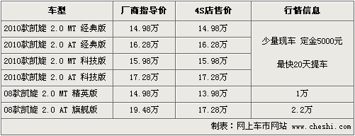 2010款凱旋少量現車 老款降2.2萬元甩貨