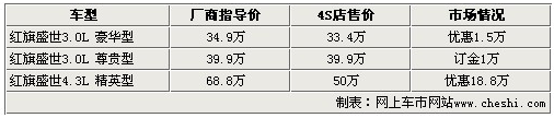 據紅旗盛世4S店銷售人員介紹,很多紅旗汽車的愛好者一直很關注盛世的情況,到店看車的消費者也多。目前紅旗盛世車型3.0L豪華型有少量現車,4.3L精英型僅有兩臺現車,3.0L尊貴型暫時沒有現車。如有意購買3.0L尊貴型可以預訂,訂金為1萬元,但是新車到店的時間不能確定。其他兩款有現車的車型均有不同幅度的優(yōu)惠,購買3.0L豪華型可享1.5萬的現金優(yōu)惠,4.3L精英型的降價幅度較大,達到了18.8萬,最終售價僅為50萬元。