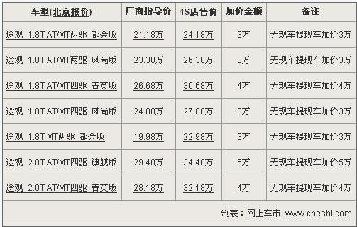 途觀最高加價(jià)5萬 提車時(shí)間無法確定