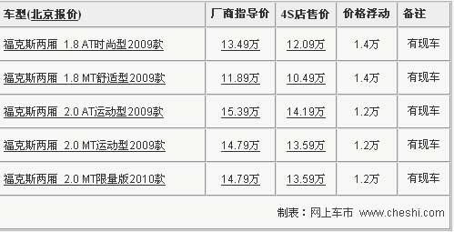 據(jù)北京福特4S店銷售人員介紹:目前購買兩廂福克斯的消費者最高可以得到1.4萬元的優(yōu)惠。1.8L手動舒適版經(jīng)1.4萬元優(yōu)惠后,售價降到了10.49萬元。2.0L排量車型有1.2萬元的優(yōu)惠,優(yōu)惠后售價分別降到了13.59萬元和14.19萬元。