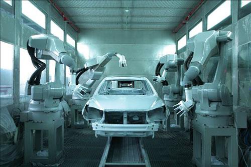 焊裝車間的機器人也讓我們眼前一亮。采用的設備主要有瑞典ABB公司生產的點焊機器人、涂膠機器人,日本大福生產的摩擦式車身儲備線、螺母自動輸送機等世界先進的設備。工作人員介紹,總焊線是柔性化生產線,一條線上能同時生產EC718/ EC718-RV兩個車型。焊裝工藝的關鍵質量控制點的焊接都是由ABB提供的焊接機器人來完成的,所有夾具都是日本富士公司生產的。在這個車間里也看到了全國精密度最高的三坐標測量儀,是從意大利進口的TORO測量機。它集開發、檢測、統計分析于一體,是設備、夾具、檢具、單品零件、分總成零件及白車身總成各檢測系統的連接紐帶,確保了生產制造過程的整個系統數據的統一、精準,大大提高了整車的質量檢測的精準度,投入使用如此高級的國際化檢測設備是一個汽車廠家高度重視產品質量的表現。