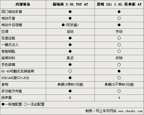 在內部裝備上,兩款車各有特點。四門電動車窗、電動可調外后視鏡均為兩款車標配。由于福瑞迪是頂配車型,所以定速巡航、真皮座椅、自動恒溫空調、電動天窗、智能鑰匙等配置較為齊全,而一鍵式點火在同級車車型中也比較少見。但單碟CD、后排座椅不可調相比缺少了一定的檔次。思域1.8經典型雖然并未配備天窗,座椅為織布材料,后排座椅沒有帶中央扶手,但是后排座椅可以60:40可調,這樣整車在空間的靈活性上就比較大,相比更加方便家庭使用。
