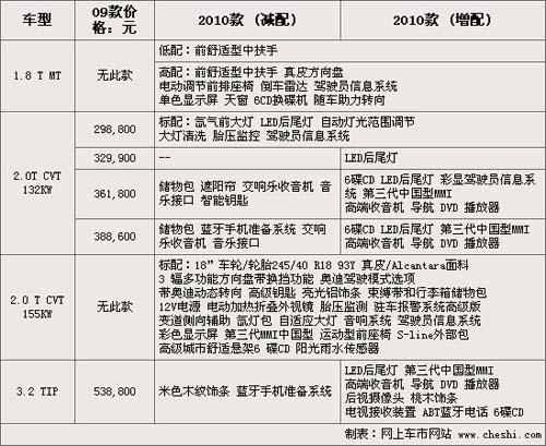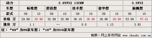 2010款A4L增兩款車型 1.8TFSI售價 近30萬