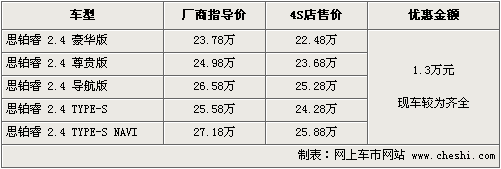 東風本田思鉑在09年9月初上市,全系共計五款車型,售價為23.78萬元—27.18萬元。上市后一直備受關注,訂單和銷量也持續增加。根據網上車市價格監測系統顯示,目前購買思鉑睿全系可優惠現金1.3萬元,現車方面較為齊全。具體車型行情如下: