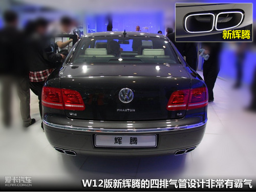 W12版新輝騰在車頭部與尾部都配備了探測雷達,配合自動車距調節系統(ACC)可以讓車輛與前車自動保持適當的距離。新輝騰的排氣管與后杠融為一體,W12版車型的四排氣管設計顯得比低調的老款車型霸氣許多。尾燈也做了適當的修改,改為了大眾統一風格的LED燈組。