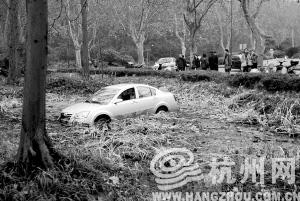 早上7點多,上班路上聽到交通91.8廣播電臺正在播報,一位胡先生說他的車剛剛失控,一頭沖進了西湖國賓館北門附近的小荷花塘里,人倒是沒有危險。
