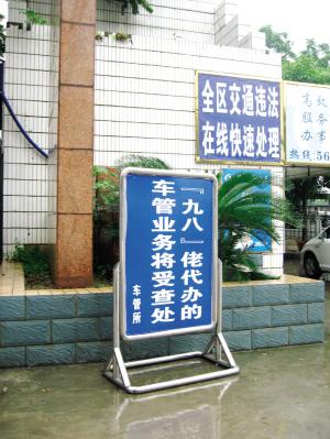 10月21日,南寧車管所江北工作站,警示牌提醒車主按正規(guī)手續(xù)辦理業(yè)務。