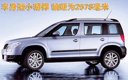 斯柯達(dá)Yeti被稱(chēng)為迷你 SUV,這是因?yàn)樗箍逻_(dá)Yeti身材十分短小精干。其軸距僅為2578毫米,相比自己的兄弟途歡Tiguan還短26毫米。全車(chē)長(zhǎng)也僅為4233毫米,這在國(guó)內(nèi)也僅僅是一款小緊湊型轎車(chē)的長(zhǎng)度。