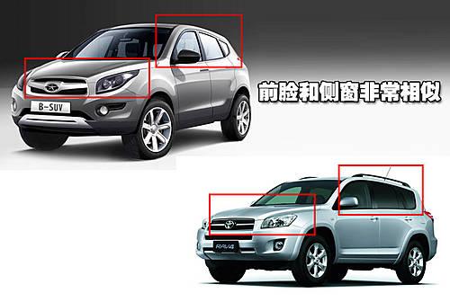江淮BSUV是以雄鷹概念車為原型打造的一款小型SUV,雖然沒有RAV4那樣的身材,但整車的側面造型和前引擎蓋的線條都與RAV4非常相似,讓人一眼看上去會聯想到縮小了的RAV4。江淮BSUV的外形設計非常動感時尚,相信會迎合國內很多消費者的胃口。