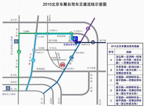 自駕車可經以下路線行至花博會停車場,換乘免費擺渡車前往天竺新國展參觀: